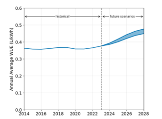 Figure 1. Annual average site WUE across U.S. data centers (Source: Berkeley Lab 2024 US Data Center Energy Usage Report)